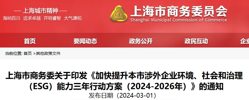 从国家政策层面讲,早在2024年3月,上海市就发布了涉外企业环境、社会和治理(ESG)能力三年行动方案,成为了中国第一个以政策发文支持ESG的城市。当前ESG已成为影响企业国际竞争力和可持续发展的重要指标。
