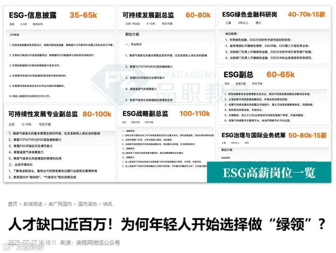 央视网报道:ESG绿色人才成行业新宠,缺口近百万
