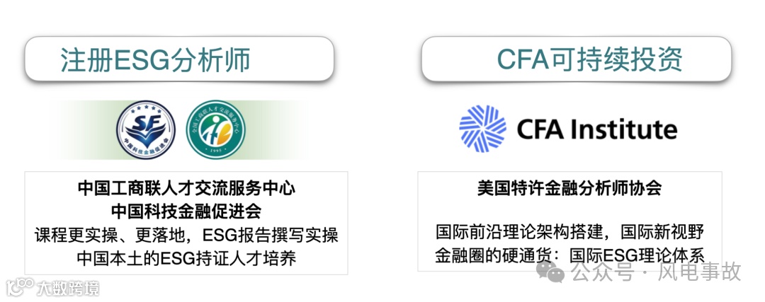 这一点,从企业的岗位JD上就能得到答案,CFA协会的可持续投资证书和国内受到广泛关注的中文权威认证的注册ESG分析师证书。