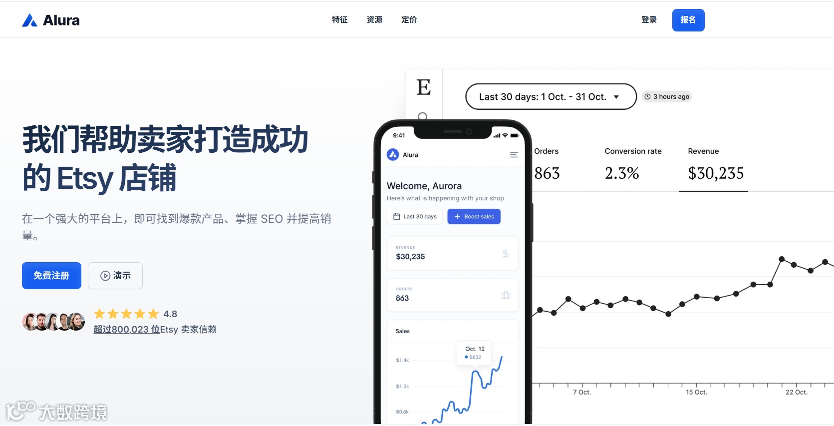Alura:Etsy 选品工具,可追踪竞品 30 天动态、挖掘低竞争高需求产品,同时配套 Listing 优化建议。