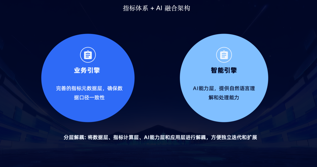 垂直应用深耕例如AIMetrics智能指标应用平台,“指标+AI”将不仅是一个抽象概念,更是一套具备工程落地路径、行业Know-how、智能协同能力的完整体系。它打通了数据治理与智能应用的闭环,将“指标”作为AI理解企业业务的语义底座,将“AI”作为指标能力释放与组织协同的加速器,从实践中可以看到“指标+AI”都已经展现出其穿透式、结构化的解决力。