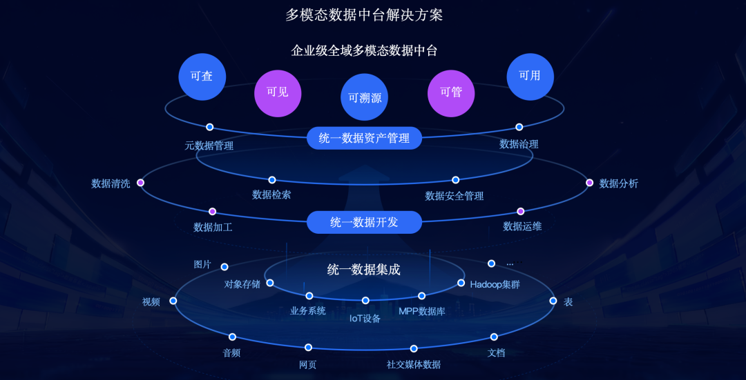 EasyMR解决了“地基”问题,而多模态数据中台则是在此之上构建的“大厦”,其核心理念是实现所有模态数据的三大统一 :