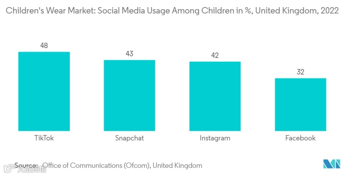 根据最近的科学研究,消费者对名人代言的产品表现出更好的回忆,无论他们是否是真正的粉丝。因此,童装企业因消费者购买行为的变化而采取创新的代言策略。他们专注于名人通过社交媒体渠道参与不同品牌的活动和广告。随着社交媒体影响力的不断增强,预计这将在未来几年对市场产生积极影响。