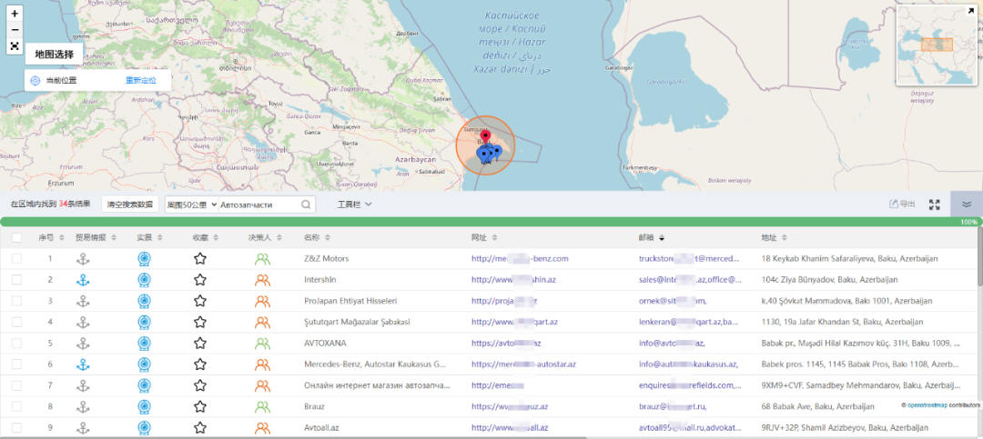 2GIS:该平台覆盖阿塞拜疆企业信息,部分企业还标注社交媒体账号,方便通过WhatsApp、LinkedIn等渠道进一步沟通。