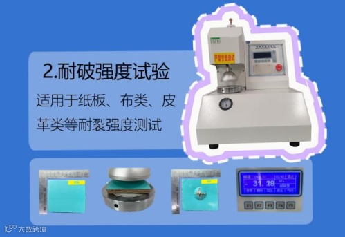 - 全自动耐破强度试验:测定纸板、布类、皮革等材料耐裂能力,抵御外力冲击;