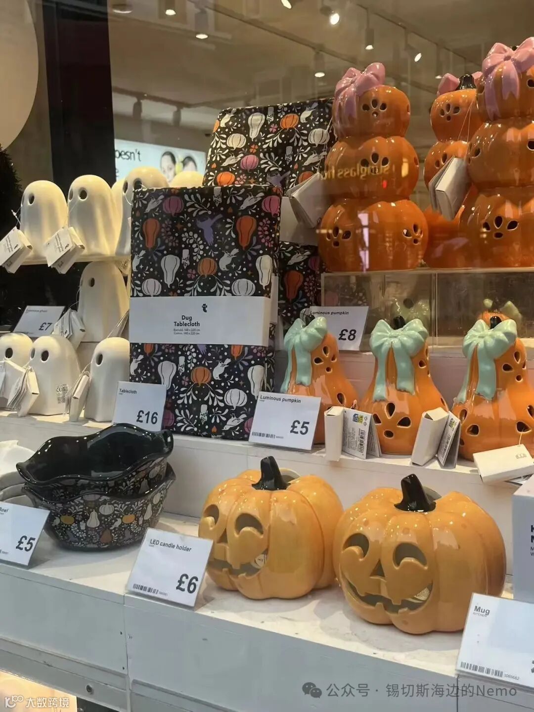 往年通常10月上新万圣节及圣诞产品,但伦敦线下商场9月底已全面铺开节日氛围,万圣装饰与圣诞小摆件大量陈列。