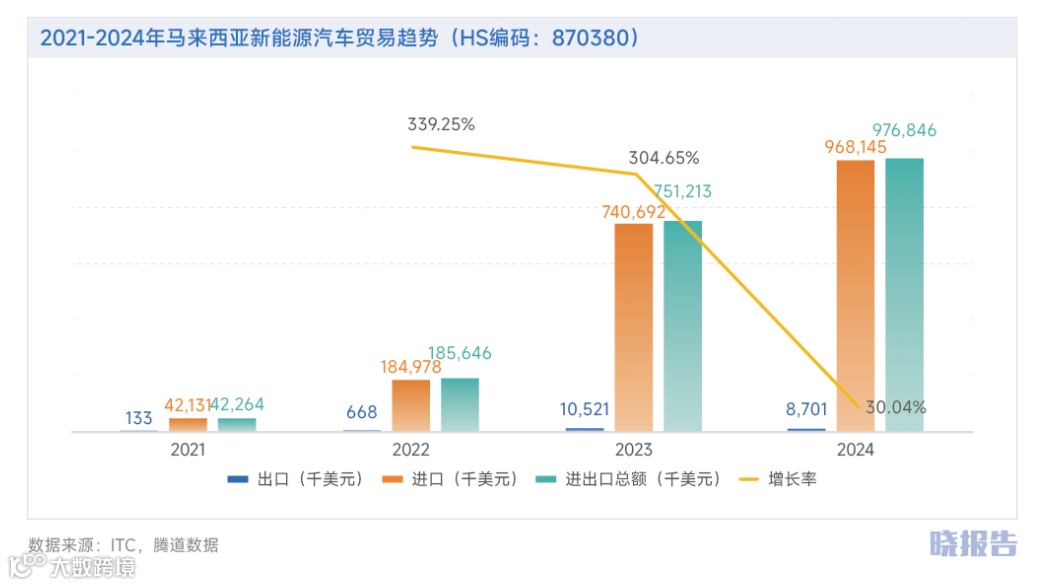 2024年11月,马来西亚登记电动汽车(xEV)44423辆,同比增长19%;纯电车型达14766辆,增速45%[12]。