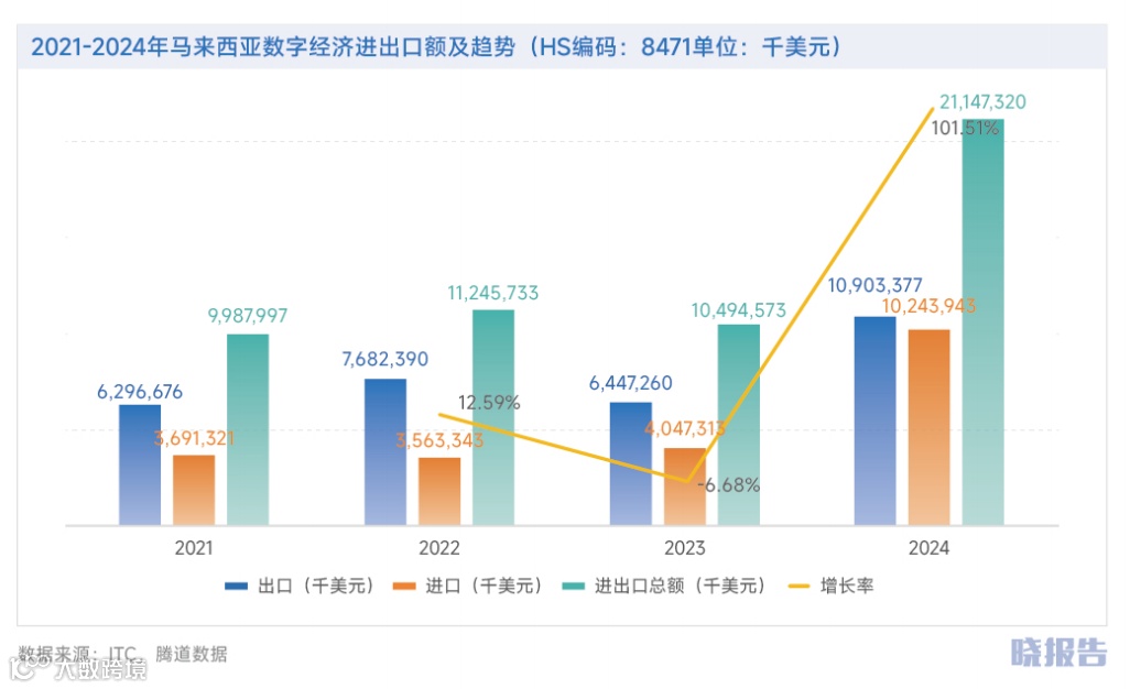 2024年数字贸易额同比激增101.51%;阿里eWTP数字贸易枢纽、腾讯云吉隆坡数据中心已投入运营[15]。