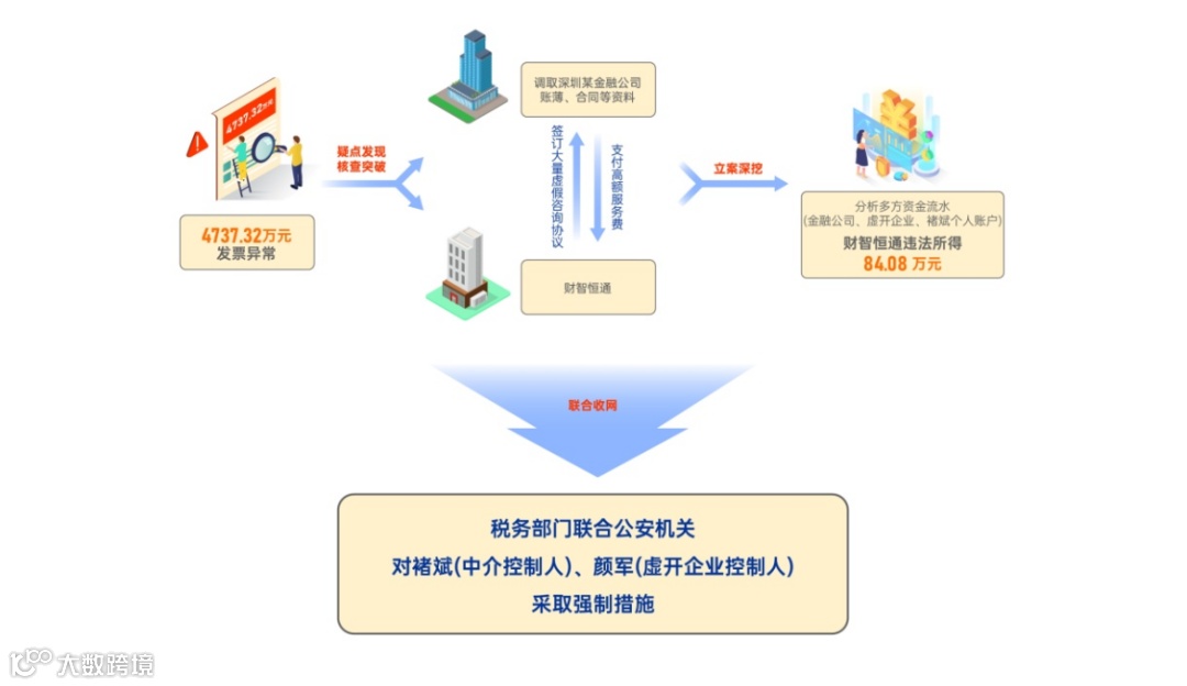 国家税务总局深圳市税务局稽查局查处深圳市财智恒通企业管理咨询有限公司(以下简称“财智恒通”)在2019—2021年为深圳鼎信私募股权基金管理有限公司提供服务期间,主动提出虚列成本等违规税务策划方案,帮助其取得虚开增值税专用发票52份(金额4792.11万元),致少缴税款1186.90万元,非法获利84.08万元。
