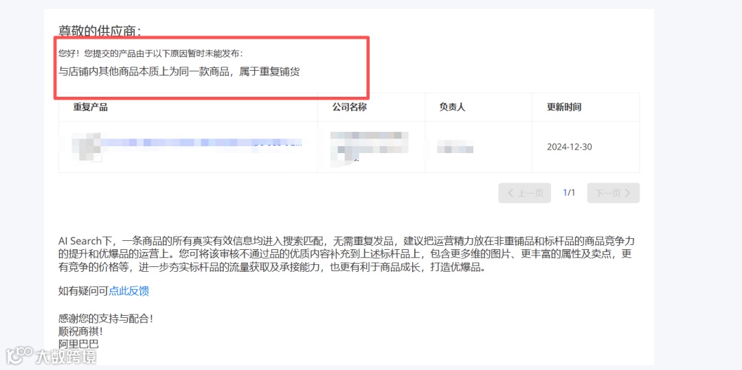 近期有卖家反馈,发布产品时被阿里国际站系统拦截,原因为存在重复铺货行为。