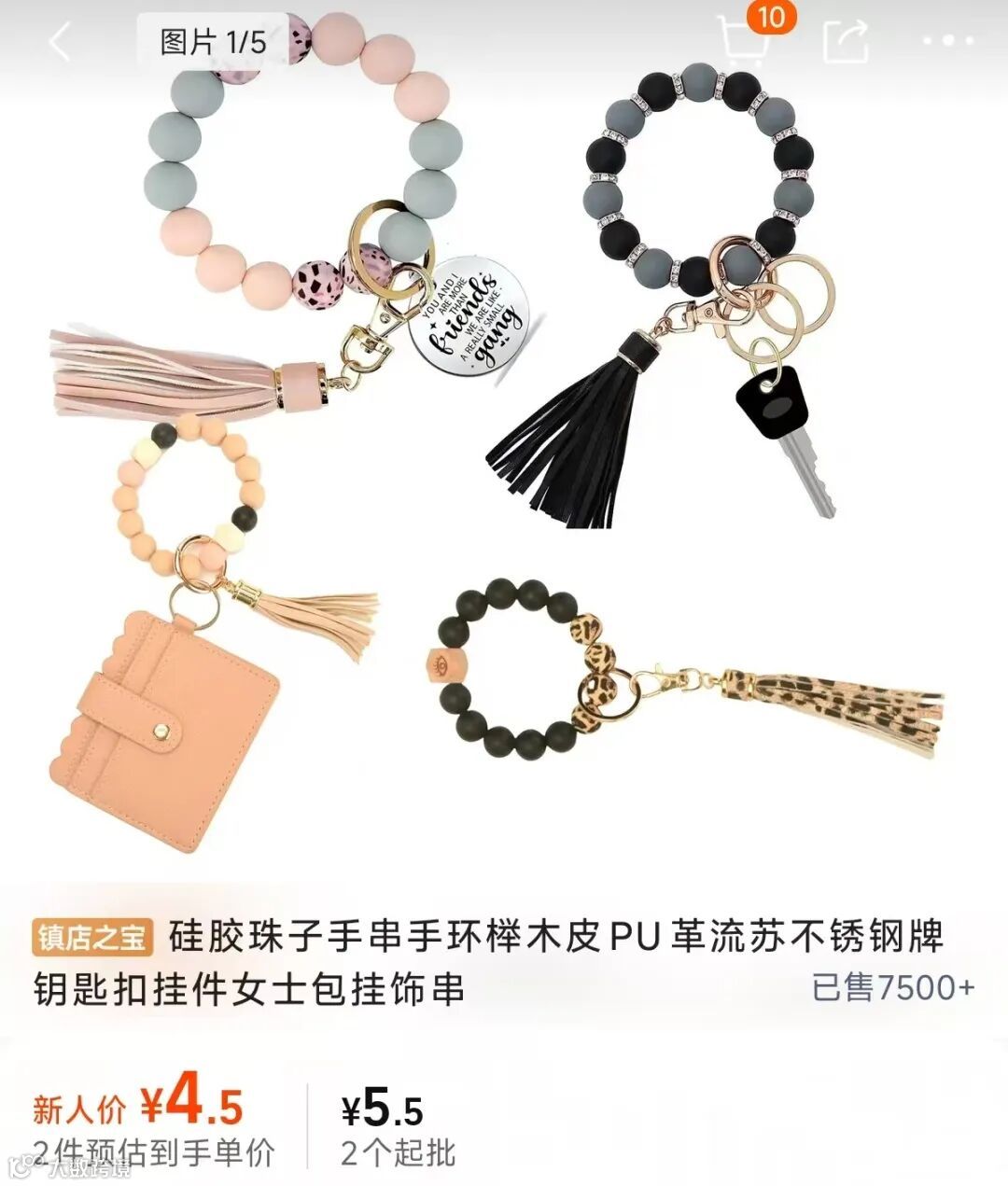 该钥匙扣采用硅胶手串+PU皮+金属扣组合,义乌工厂批量生产后成本极低,利润空间充足。