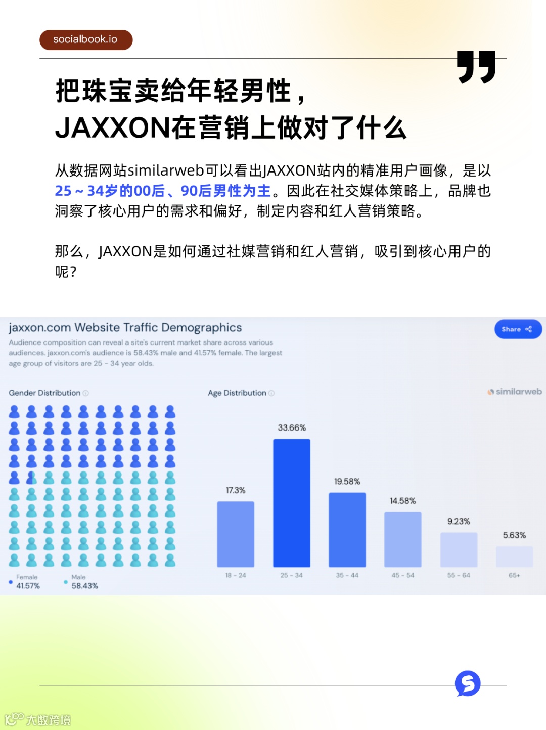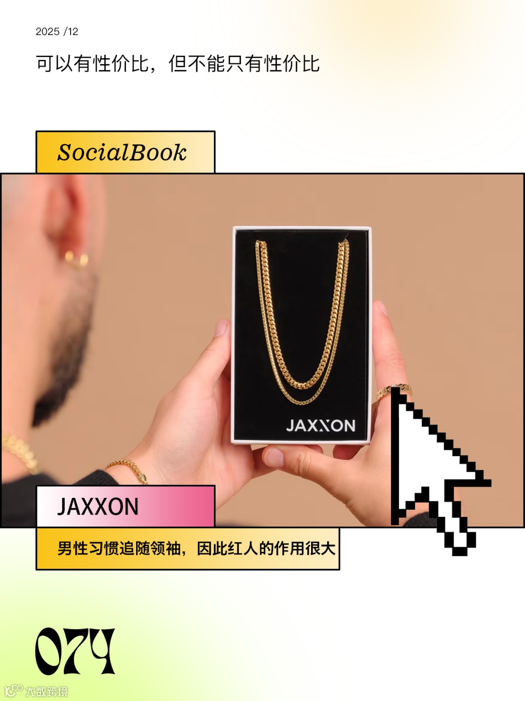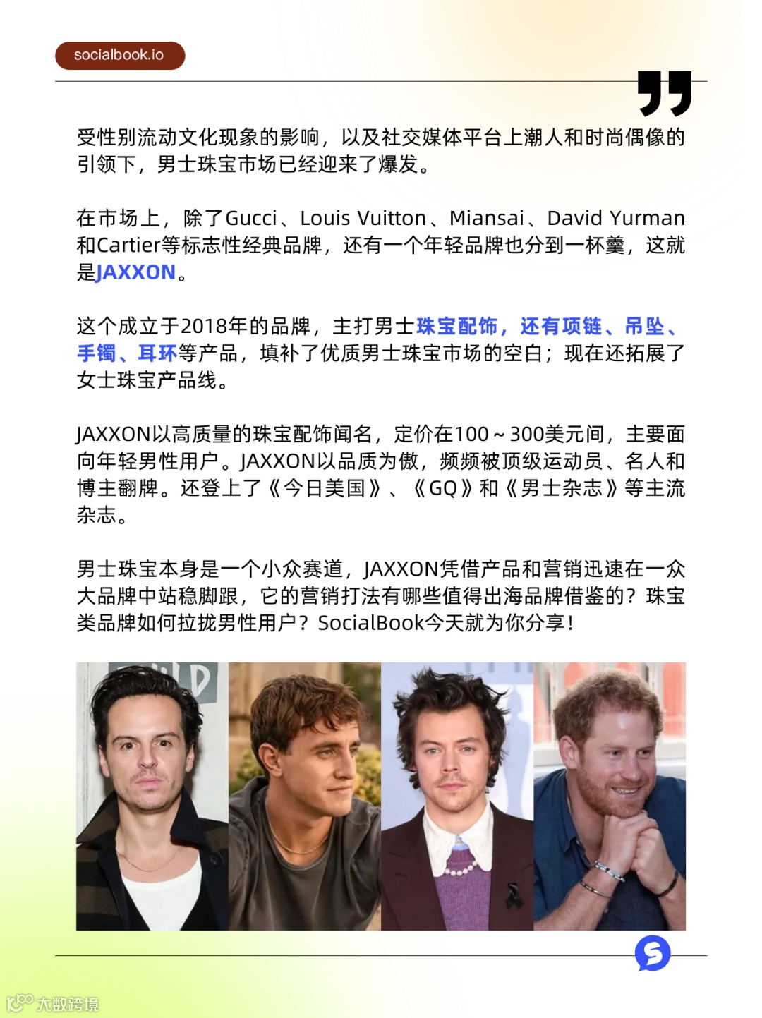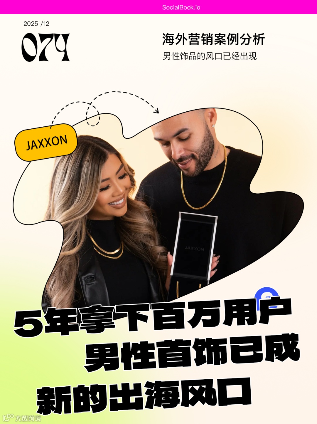 在传统小众的男士珠宝赛道中,JAXXON凭借差异化产品策略与精准营销,成功跻身主流品牌行列,其增长路径对出海珠宝品牌具有参考价值。