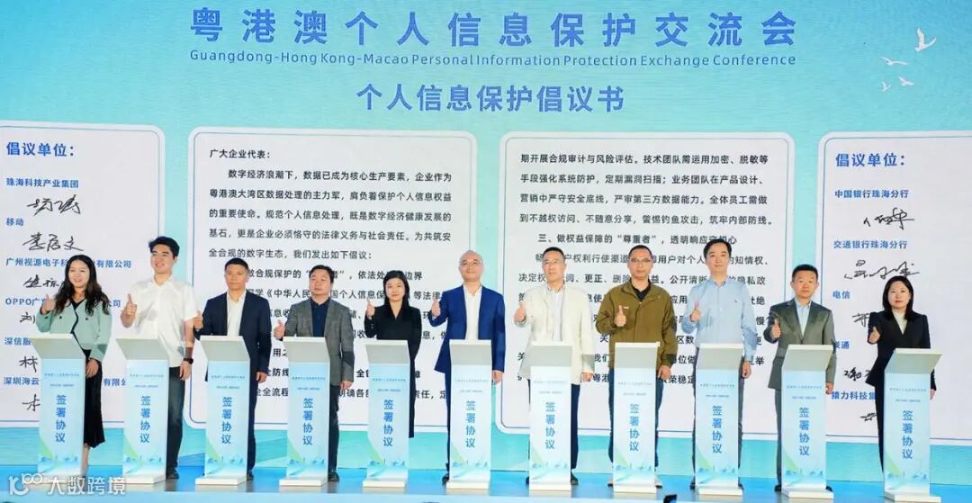 会上,大湾区重点企业代表联合签署“个人信息保护倡议”,涵盖运营商、AI科技、数据安全、金融、教育等多个领域,覆盖数据采集、流转、存储、应用等全产业链关键环节,且多涉及数据出境业务。
