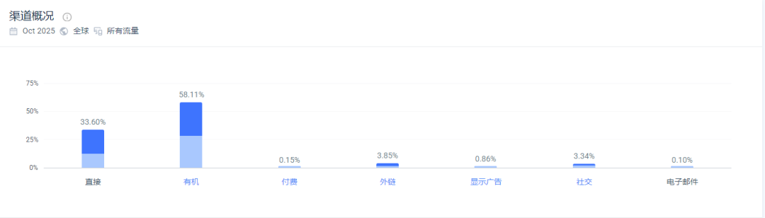 根据similarweb数据显示,Component Hardware官网的流量主要来自于自然搜索(58.11%)、直接访问流量(33.6%)、外链(3.85%)。
