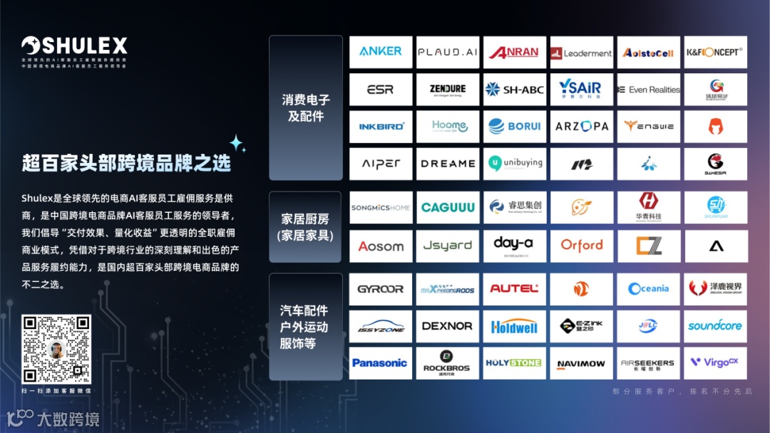 至今,Shulex已与Anker、遨森、致欧、元鼎、亿色等上百家头部跨境品牌建立深度合作,沉淀出可复用的行业知识与标准化场景方案,帮助不同类目品牌快速落地AI员工,推动服务与商业价值的无限可能。