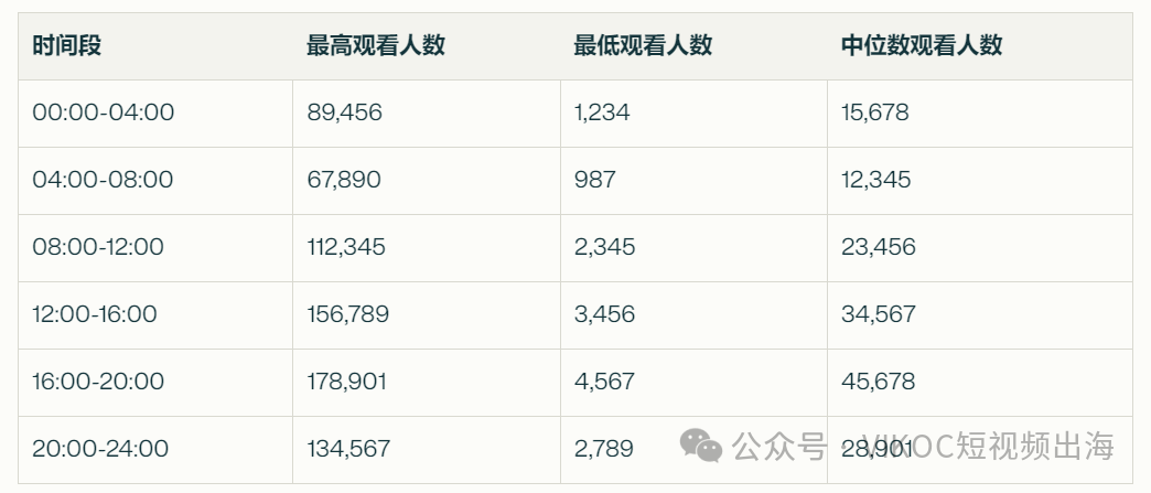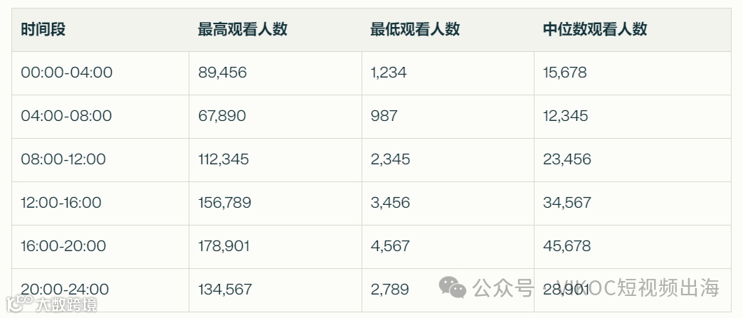 夜间直播:虽然00:00-04:00的观看人数不是最高,但仍有潜力,最高观看人数达到89,456,可能适合针对特定目标受众的直播。