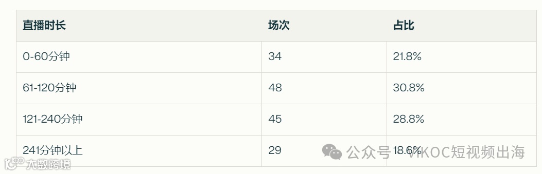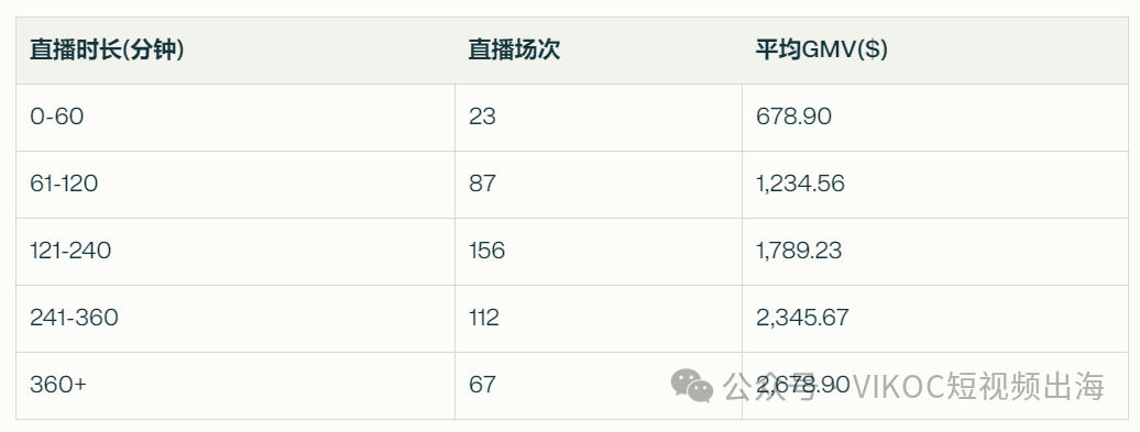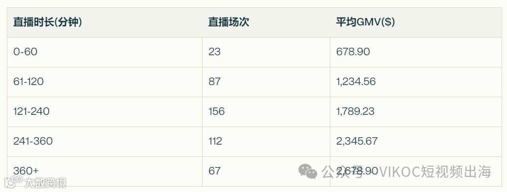 对于GMV超过500美元的直播,时长在2-4小时的直播效果较好,既能保持较高的GMV,又不会过度消耗主播精力。