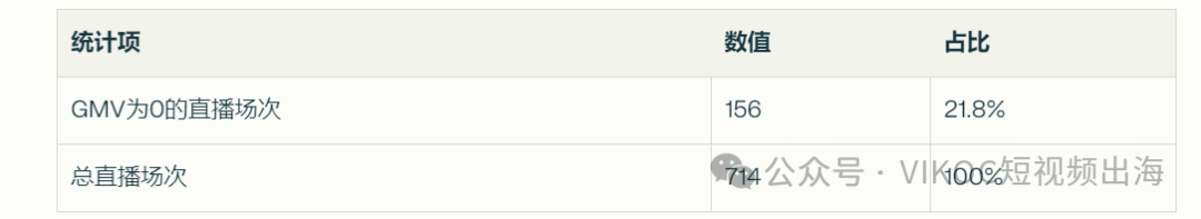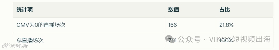 以上是围绕单纯直播产生GMV的数据分析,接下来再看一组单场直播没有任何销量的数据统计: