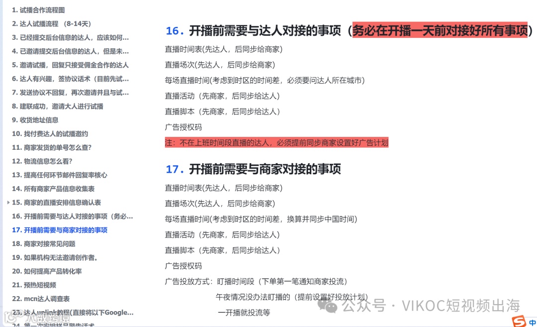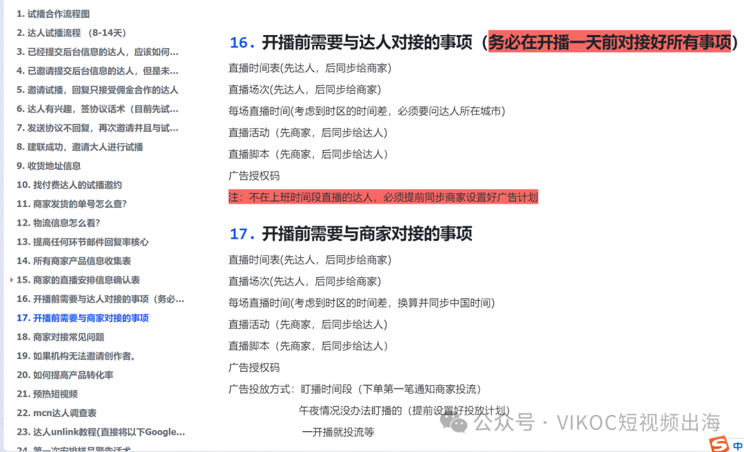 (3)、达人直播业务SOP和我们直播团队内部的各种细节: