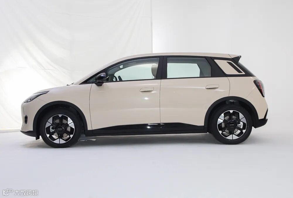The side of the new car features hidden door handles and is equipped with a black rearview mirror shell that is different from the body. In terms of body dimensions, the length, width, and height of the new car are 4270/1850/1575 (mm), and the wheelbase is 2750mm.