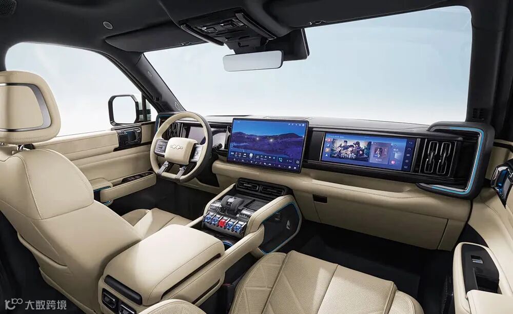 In terms of interior, the new car has three color options: Eclipse Blue, Shallow Green, and Sand Dune Brown (newly added). In terms of configuration, the new car adopts a combination of 12.3-inch LCD instrument panel, 15.6-inch central control screen, 12.3-inch passenger entertainment screen, and also has a 26 inch head up display.
