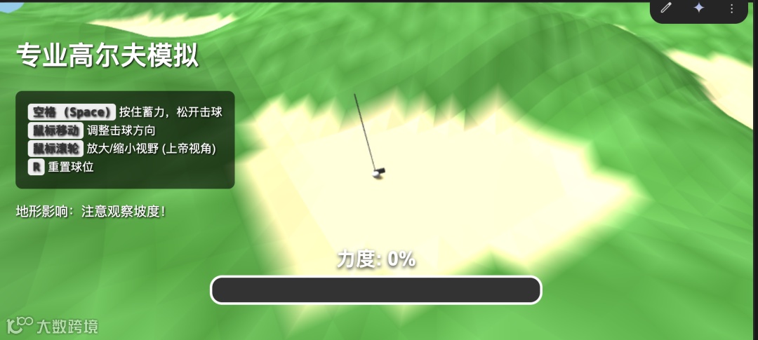 角色与物体: 画面中需要显示高尔夫球和一个简易的球杆模型。