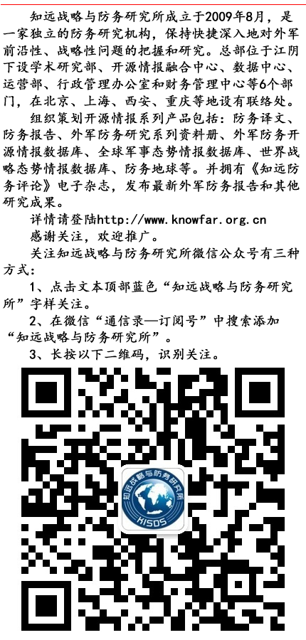 更多资料,请访问知远外军防务开源情报数据库(http://www.knowfar.net.cn/)或下载安装“知远防务”手机APP(http://www.knowfar.tech/)了解。