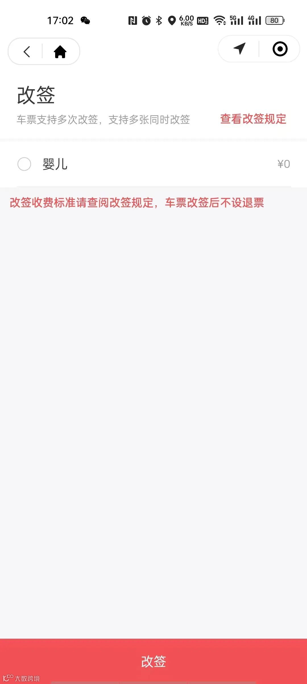 选择“改签”后可进入改签流程,请自行比对改签规则或向客服咨询。