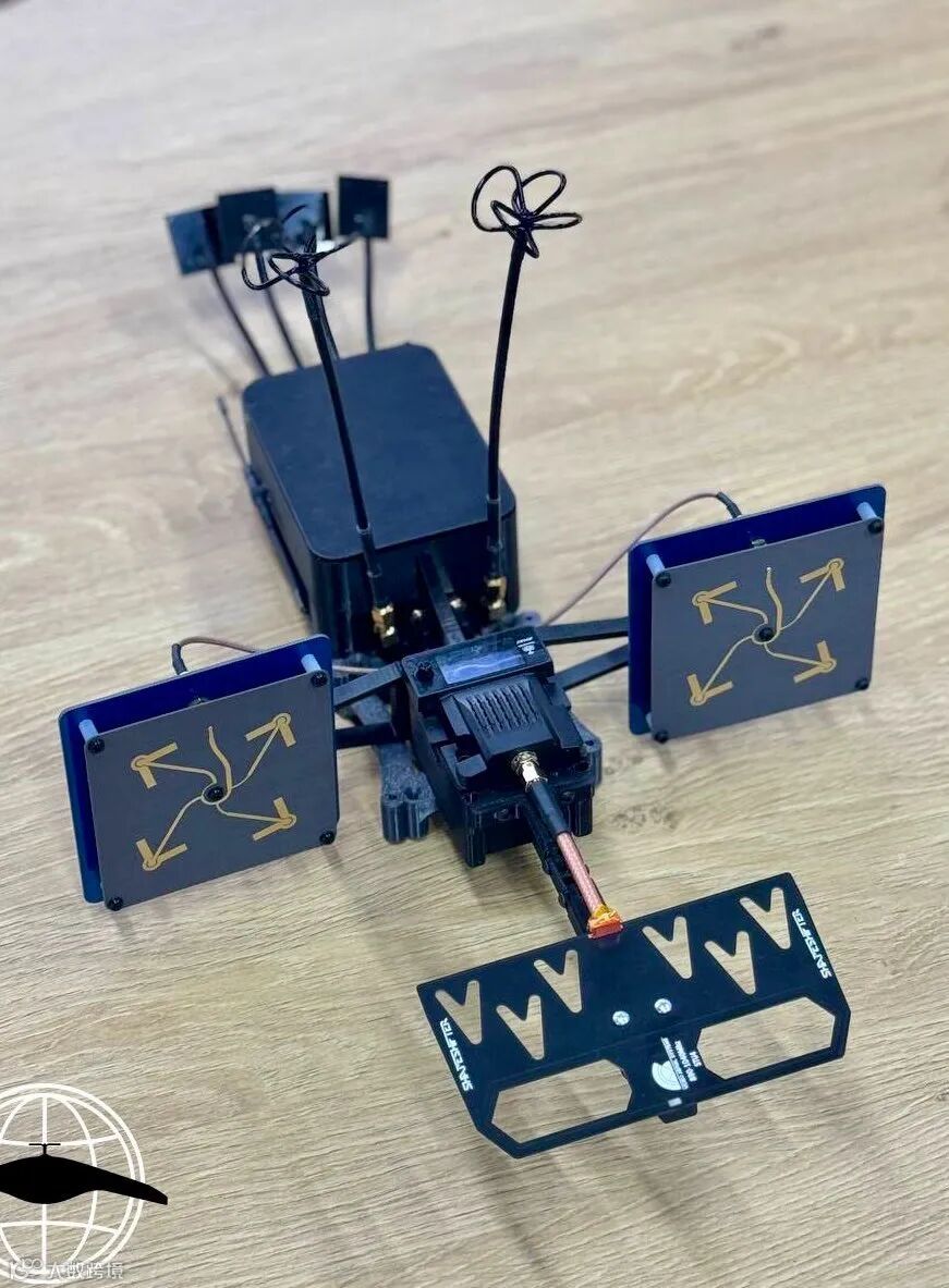 一款乌克兰产的FPV无线电中继器配备了一套精巧的天线阵列。这套双边方形贴片天线用于接收5.8GHz的视频信号,由一家名为Scream Industries的乌克兰公司生产。