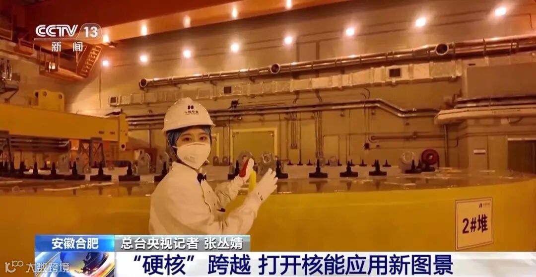 总台央视记者张丛婧:我现在是换了一身装束,此刻已经是全副武装,因为我进到了核心区域,在我身旁的黄色圆柱体内就是核反应堆,此时此刻这里正在进行着核反应。我们离它这么近,会不会有核辐射呢?我身上的测量仪显示的数字是0,这就意味着我身处的环境核辐射剂量是0,甚至比外面自然环境的核辐射还要低。