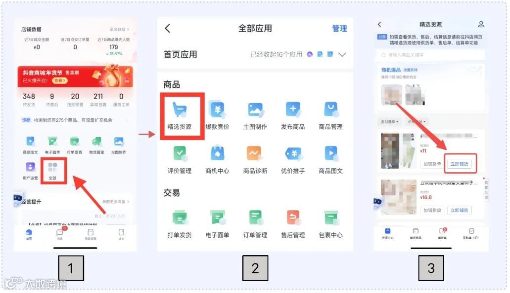 优化采买链路:抖店商家无需额外入驻,可直接通过【抖店-精选货源】完成选品、铺货、采购一站式操作,发品最快仅需3分钟,流程更便捷[k]。