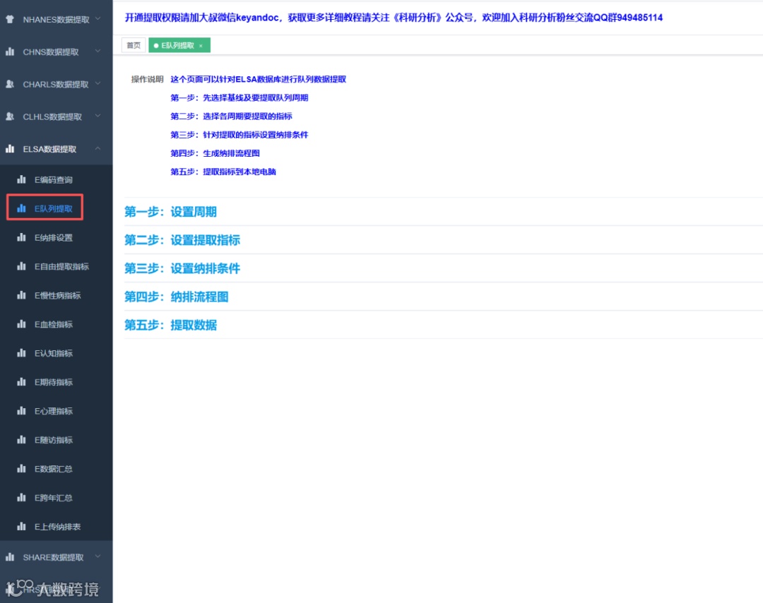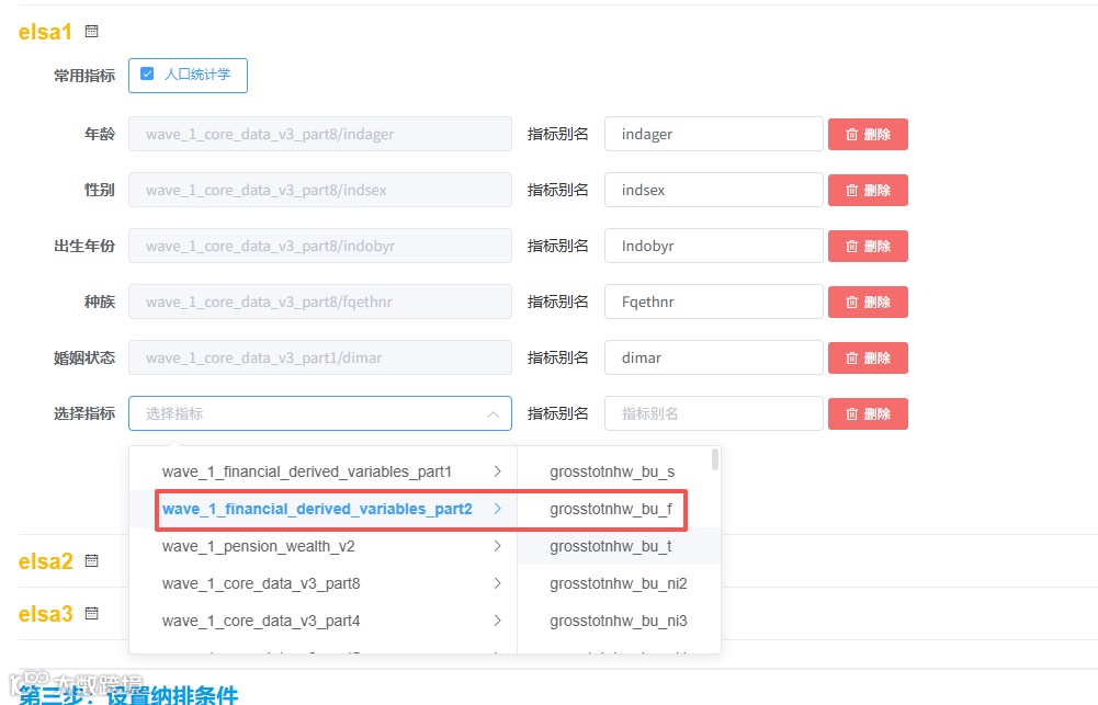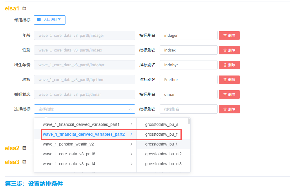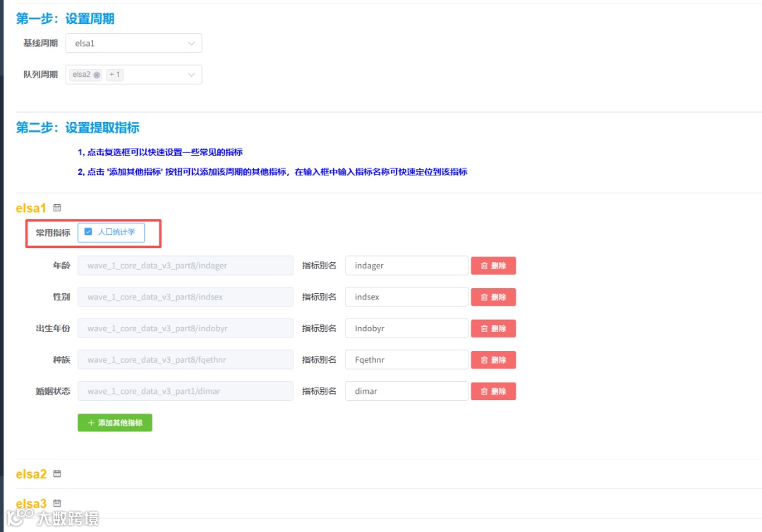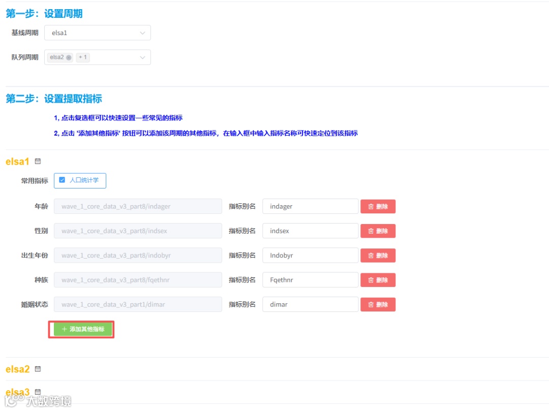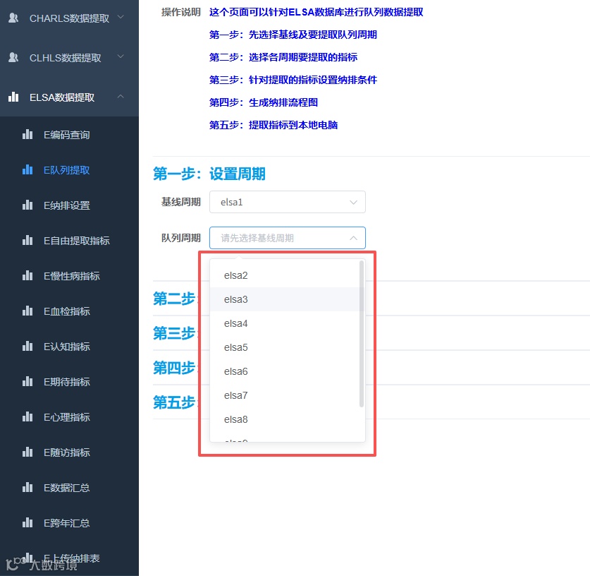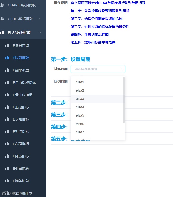 ELSA数据库目前有十个周期,提取队列指标的第一步是选择其中一个周期作为基线周期,基线周期只能单选。