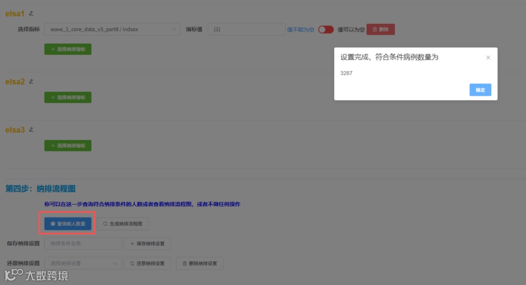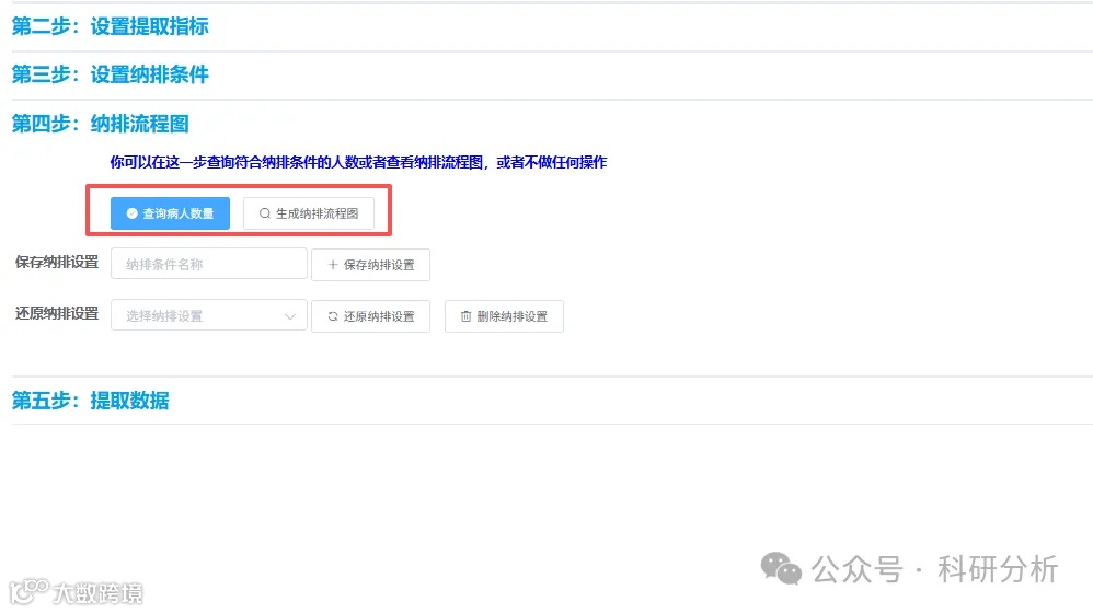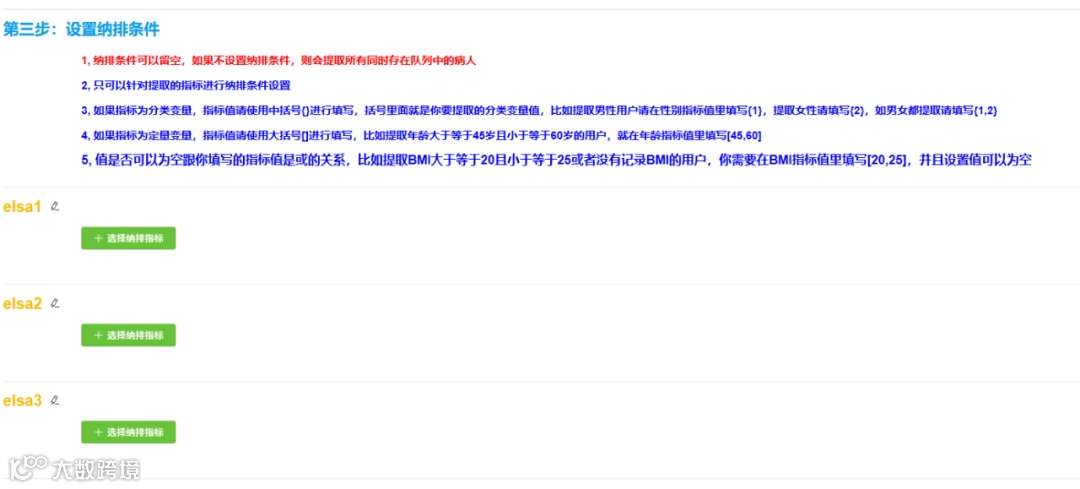 1, 纳排条件可以留空,如果不设置纳排条件,则会提取所有同时存在队列中的病人