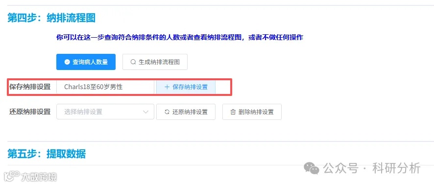 第四步可以查看符合纳排条件的人数,可以查询纳排流程图,也可以保存你的纳排设置