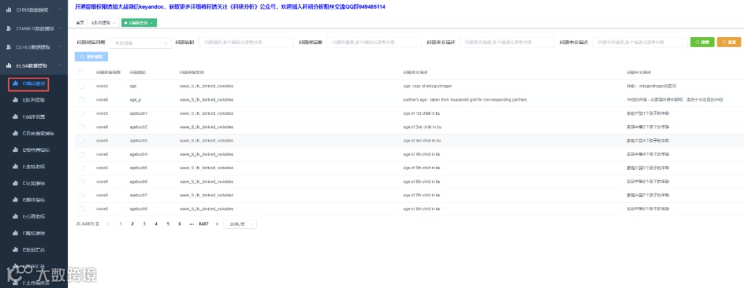 如何知道我想提取的指标在ELSA中的指标名称呢?可以在编码查询里面根据指标关键字查询哈。