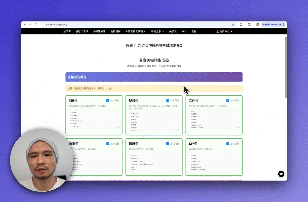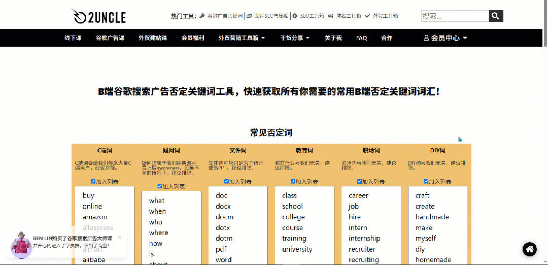 工具链接:https://2uncle.com/2b-google-search-ads-negative/