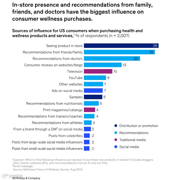 品牌需要考虑哪些信息和哪些信使最有可能引起消费者的共鸣。我们发现,销售与正念相关的产品的公司可能希望主要使用医生的推荐和社交媒体广告,而销售健身产品的公司可能希望利用朋友和家人的推荐以及私人教练的认可。