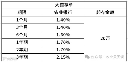 二、农业银行大额存单利率表
