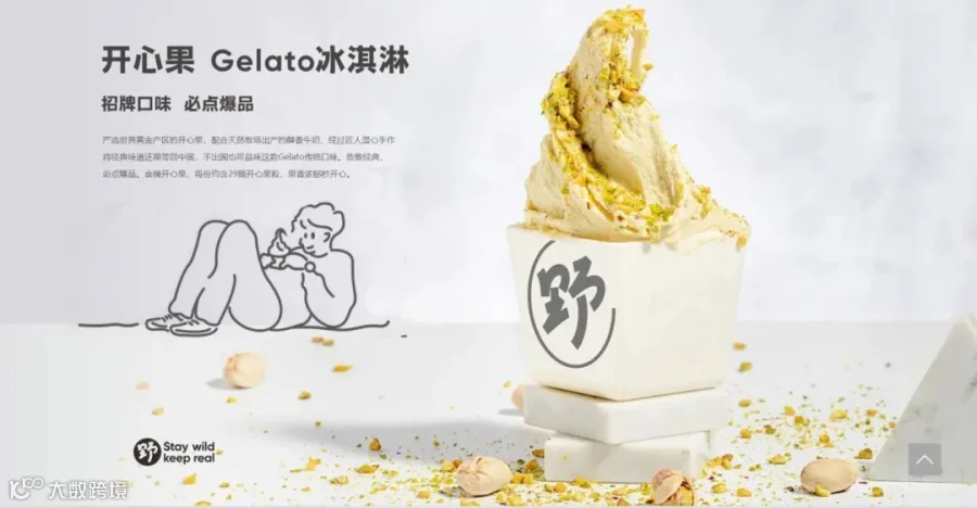 定位为中国本土中高端现制意式冰淇淋(Gelato)连锁品牌,以“当天现做,分时售卖,拒绝隔夜”为核心卖点,强调新鲜、低负担与现场制作体验。品牌前身为“野人牧坊”,2024年4月更名为“野人先生”,客单价约28.01元,在同类中高端定位中具价格优势。产品矩阵以开心果(38元)、五常大米(28元)等特色风味为代表,突出本土化食材与差异化口味。行业层面,2024年中国冰淇淋市场规模约1835亿元,其中Gelato赛道增速约10%至120亿元,为品牌扩张提供品类红利与消费心智基础。