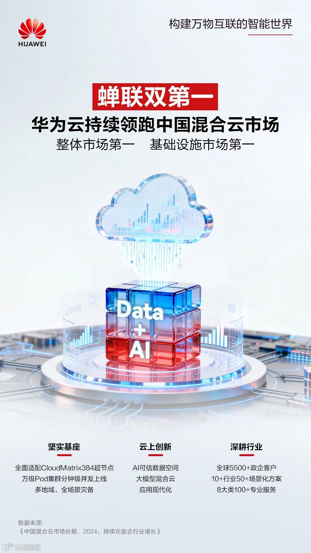 近期,全球领先的IT市场研究和咨询公司IDC发布《中国混合云市场份额,2024:持续在政企行业增长》(Doc#CHC52927425,2025年11月),华为云蝉联中国混合云整体市场及基础设施市场两项第一,持续领跑。