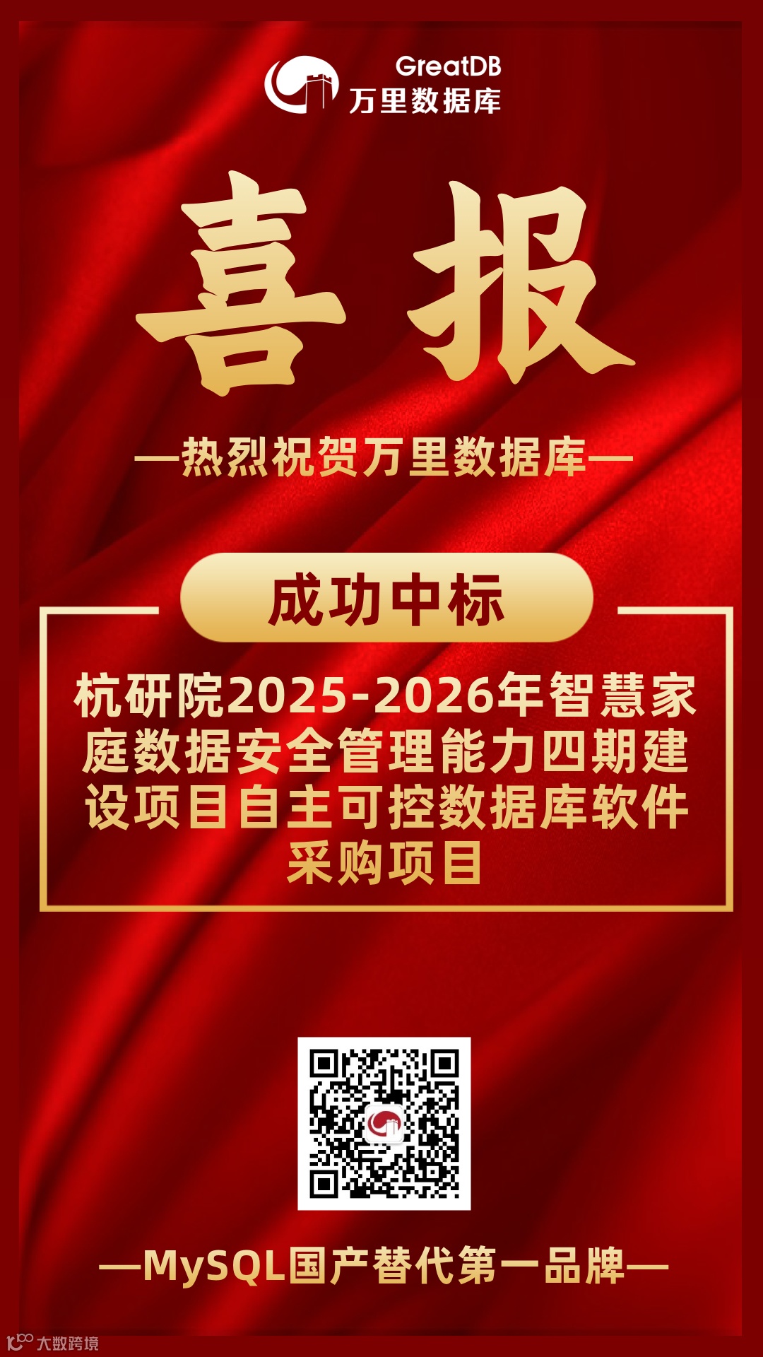 值得关注的是,这已是万里数据库连续第二年中标该项目——在去年的“2024-2025年智慧家庭数据安全管理能力三期建设项目国产数据库采购项目”中,公司已凭借优异的产品表现赢得客户信任。此次再度携手,标志着双方合作已进入持续深化、互信共赢的新阶段。