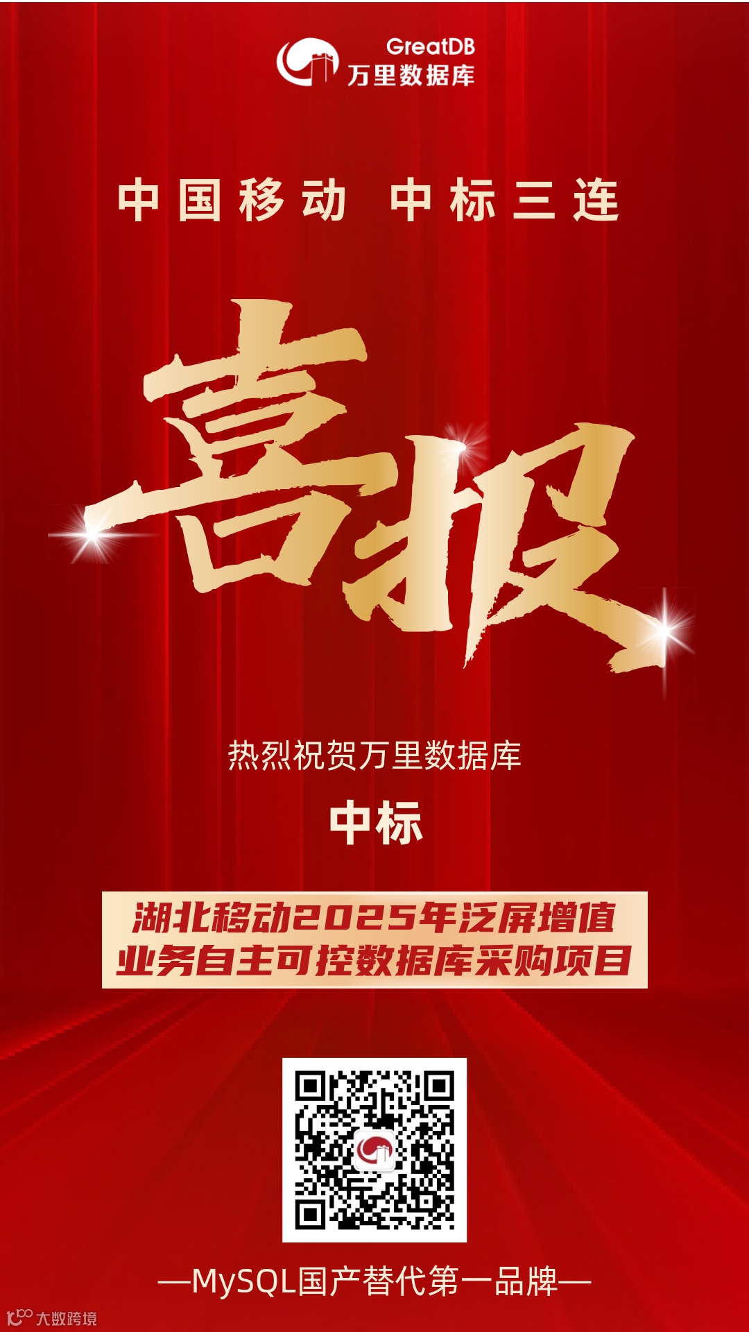 在湖北移动“2025年泛屏增值业务自主可控数据库采购项目”中,万里数据库将为湖北移动泛屏增值业务提供核心数据存储与处理支持。