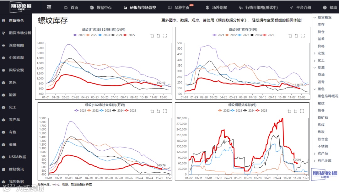 近期螺纹钢市场呈现多空因素交织的复杂局面。在供需基本面未有显著改善的背景下,价格波动主要受短期去库和宏观情绪影响。本文将结合最新数据与市场动态,从库存、供应、需求、价格与基差等多维度展开分析,为投资者提供参考。
