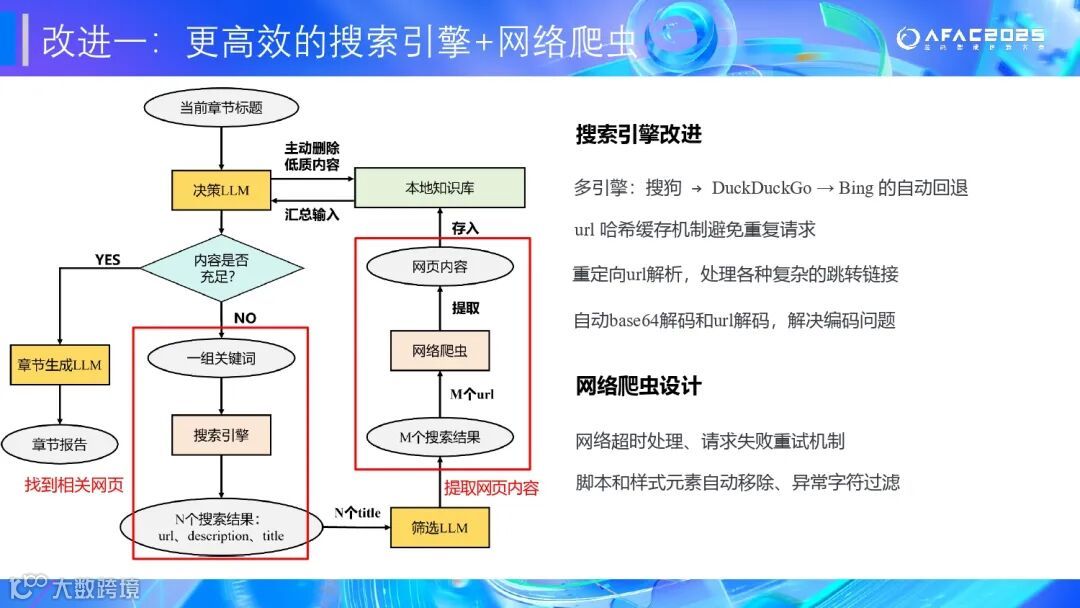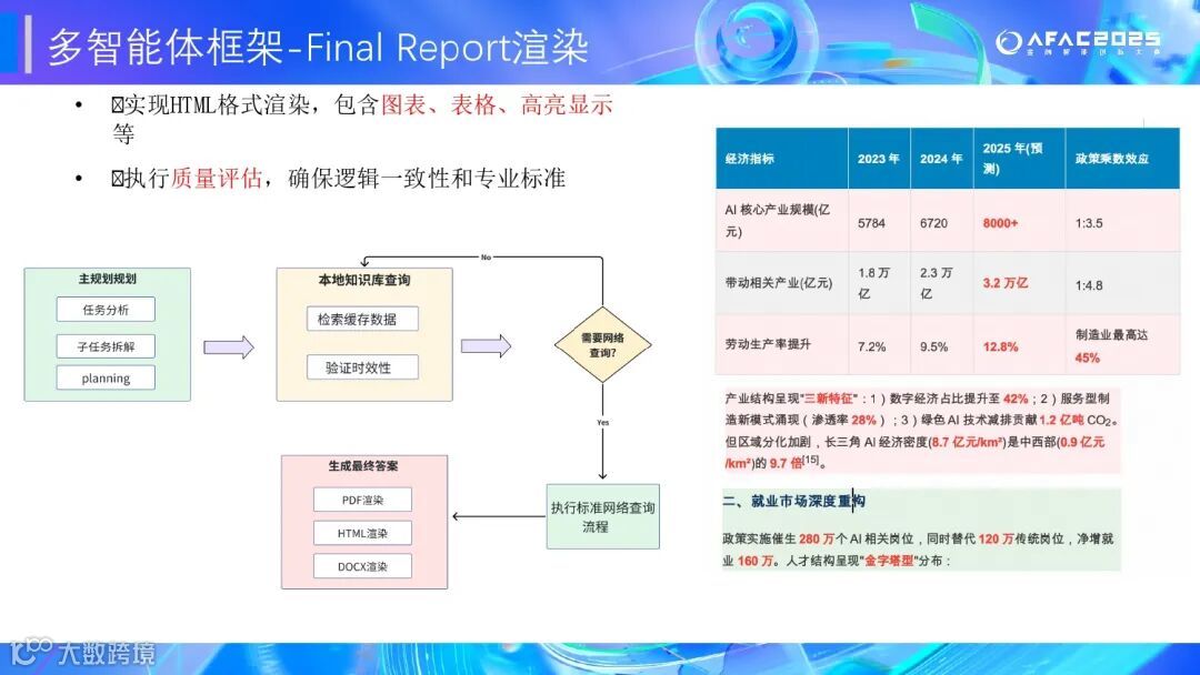 多Agent协同:通过多Agent分工与链式推理完成端到端流程,自动拆解任务并分阶段调用功能模块(如信息检索、图表生成、内容撰写与审查),包含自检与反馈循环; -