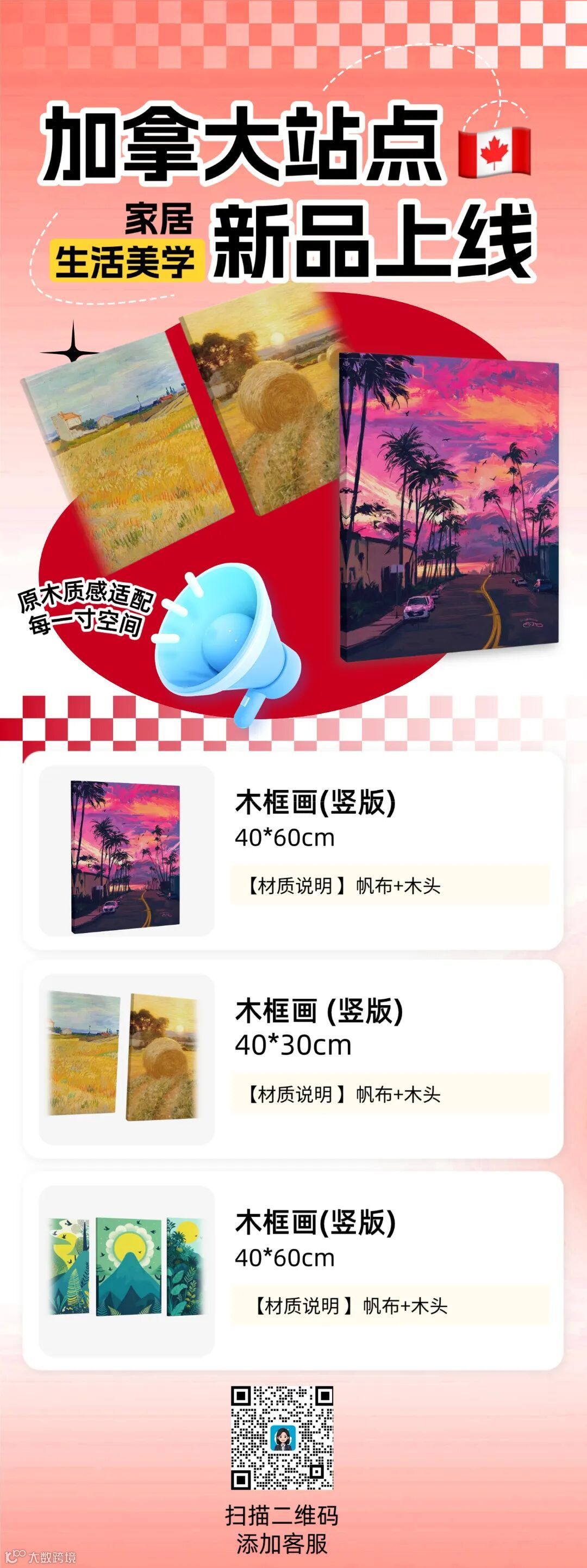 加拿大家居装饰市场集中度低,头部品牌仅占38%份额,60%木质装饰画依赖进口。中国卖家可依托“小而美”差异化优势,快速切入10%–15%细分市场——如复刻枫木手作风格的框画、支持家庭记忆定制的插画相框,精准匹配“实用与美学兼具”诉求,复购率较普通装饰品类高27%。