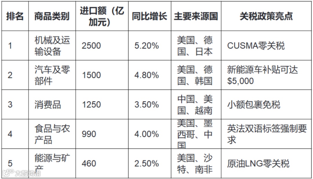 以下为2025年加拿大前五大进口品类及其贸易商实操指南: