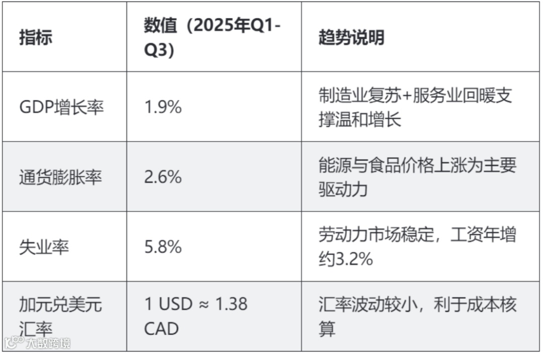 加拿大人均收入高,消费能力强,但本土制造业薄弱,日用品高度依赖进口。2025年Q1-Q3消费品进口预计达1250亿加元,同比增长3.5%。