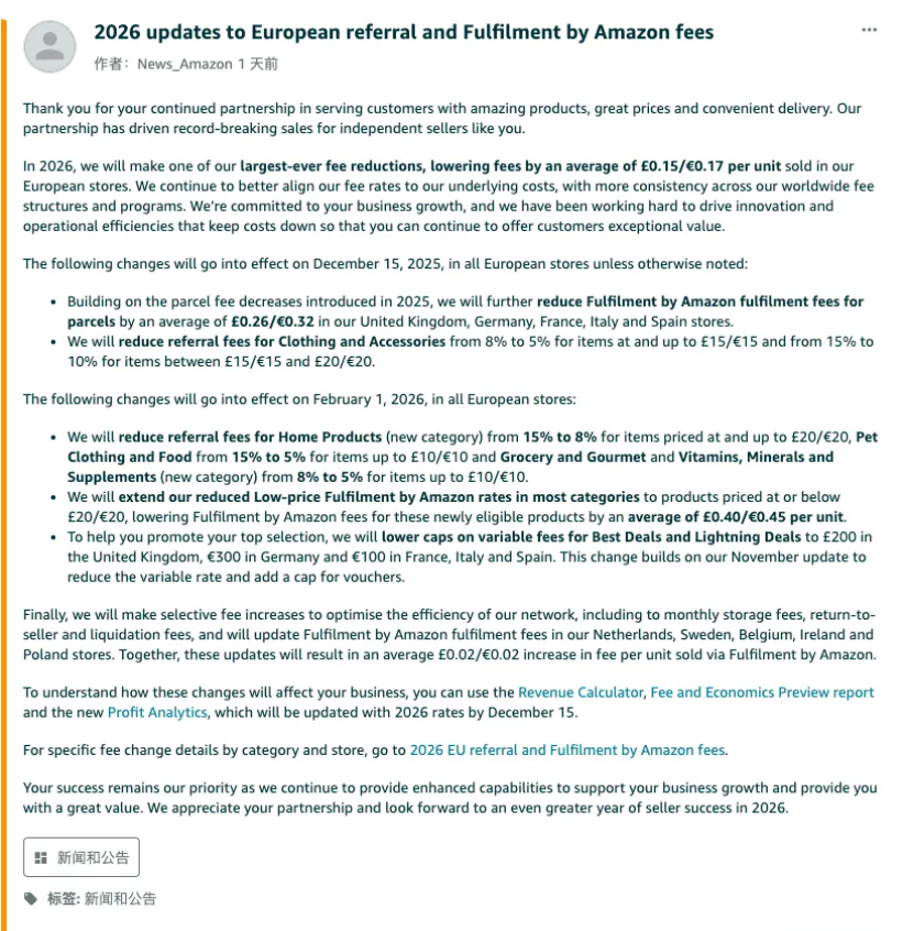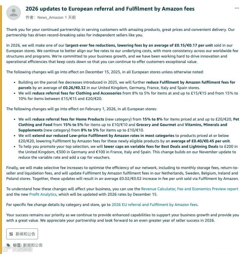 2025年12月3日,亚马逊突然向欧洲卖家抛出重磅炸弹: