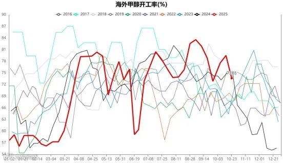 传统下游需求则更为疲软,根据卓创资讯公开数据计算的综合开工率仅46.89%,虽然环比上升3.01%,但同比下滑6.64%,较一个月前降低3.21%,处于历史同期中性偏低水平。甲醛、醋酸等传统行业开工率同比明显下滑,终端消费复苏乏力。随着冬季来临,部分传统需求进入季节性淡季,对甲醇的需求面临小幅缩减。