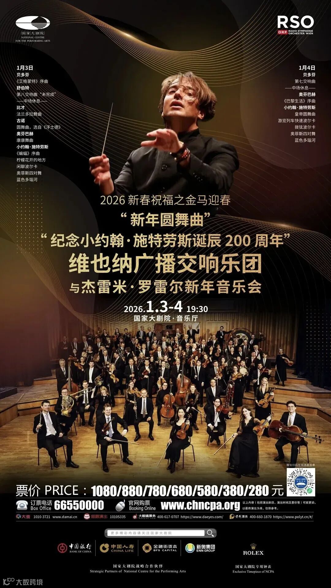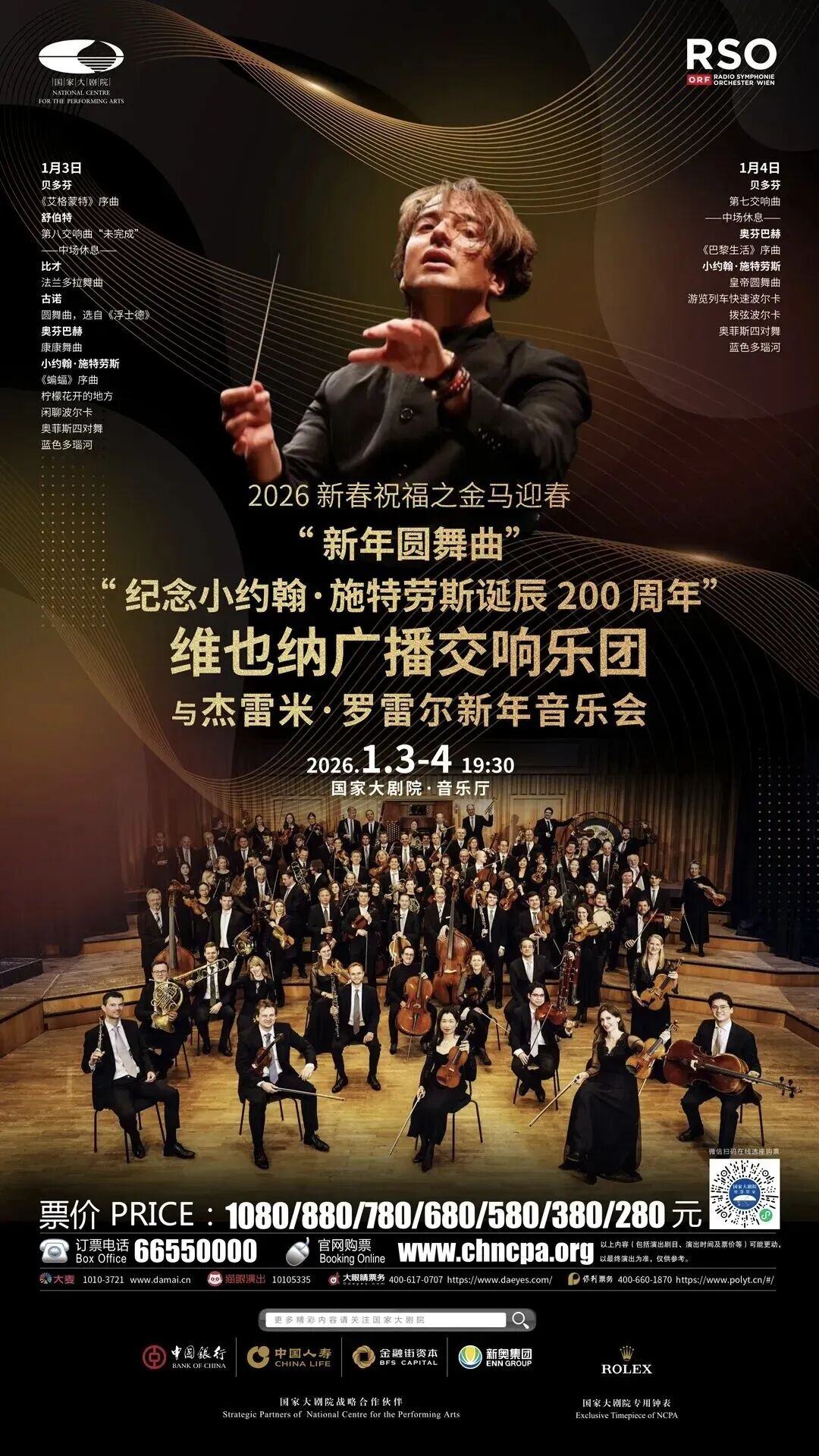 维也纳三大交响乐团之一的维也纳广播交响乐团将于2026年1月3日至4日到访国家大剧院,以两场重磅音乐会开启“金马迎春”新年华章,奏响新年圆舞曲及德奥作曲家贝多芬、舒伯特、小约翰·施特劳斯的经典曲目。(来源:央视网)